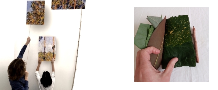 Cette approche permet d’ouvrir les intentions des élèves et de rappeler l’installation et l’in situ. Une banque de références artistiques sur le fil et le paysage est apportée aux élèves au fil des discussions et explications des projets :