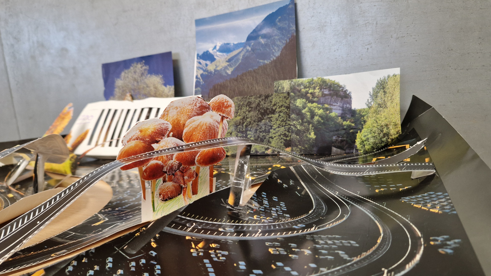découper, déchirer, coller, superposer, juxtaposer, assembler, composer, organiser, zoomer, choisir, entrelacer, évider, plier…