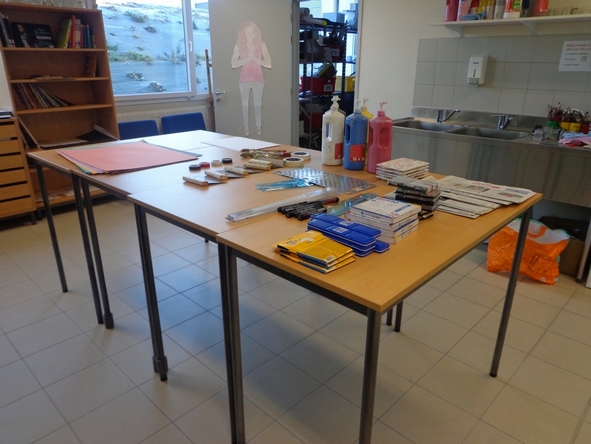 divers outils graphiques et picturaux sont disposés sur leurs tables