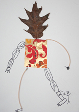 | tirer parti des matériaux pour engager une démarche créative. En leur proposant divers matériaux, les élèves ont été amenés à chercher quel parti en tirer. La situation proposée avait pour but de leur faire découvrir que l'on peut exploiter diverses propriétés d'un même matériau. La diversité des réponses a mis en évidence que certains matériaux avaient été exploités pour leur matérialité( possibilité de découper, plier, chiffonner les papiers, les tissus). (possibilité d'associer certaines matières à des choses connues pour leur ressemblance : toile de verre = cannage d'un panier ,rotin associé au bois...), leur couleur ( utilisation pour "colorer" une surface, couleur du papier, de la moustiquaire métallique...), pour ce que représentent les motifs imprimés du papier ou du tissu), pour leur forme (aspect linéaire du rotin qui simule un tracé, forme circulaire du bouchon...), pour ce que sont dans la réalité les objets proposés (la feuille d'arbre qui est toujours une feuille d'arbre dans la réalisation) |