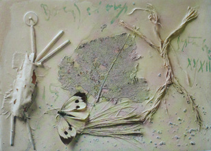 | le collage : " Il ne s'agit pas seulement de faire des "tableaux sans peinture", mais bien d'organiser des formes, des couleurs et surtout des matières que rien ne destinait à coexister dans un espace donné." Geneviève Bonnefoi, centre d'Art contemporain de l'abbaye de Beaulieu, 1972 |