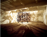 "Nous avons une production commune depuis 1992. Un soir, une nuit, le hasard a voulu que l'on repère - ensemble - sur le mur, une très extraordinaire tache de lumière. Subjugués par le mystère de cette tache, nous sommes restés un long moment à la décrypter. L'énigme fut résolue lorsque l'on vit le chat s'étirer: Il s'était endormi en cachant une partie du miroir posé sur le lit encombré d?objets divers. Le chat sauta, l'image disparut, le miracle était fini!" François Loriot et Chantal Mélia |