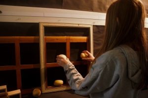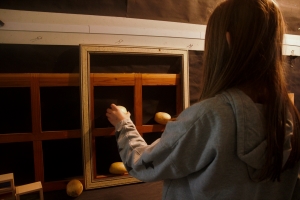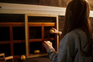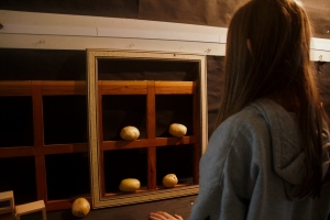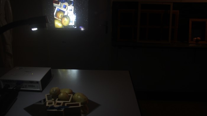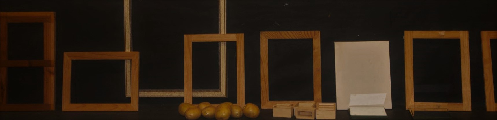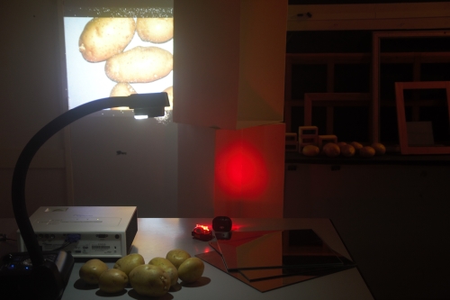 Sont énoncées les différentes stratégies envisagées pour présenter de façon artistique : les jeux de reflet, le blanc des socles qui isole et met en valeur, les cadres qui recentrent le regard vers la pomme de terre, la muliplication de son image, la transformation de son aspect par la couleur et la lumière, la projection de son image à une autre échelle, les jeux d'ombre, etc.