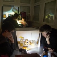 Ils se lancent dans la pratique et expérimentent, regardent, recherchent, éclairent, déplacent, orientent, cadrent, tournent autour, se rapprochent, s'éloignent, se questionnent, échangent, argumentent.
