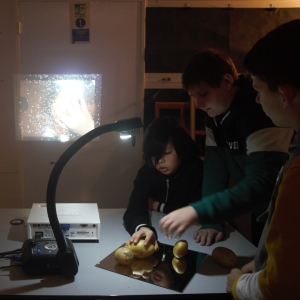 Les élèves de 6ème sont habitués à travailler en ateliers depuis le début de l'année, ils savent que cela signifie qu'ils disposeront de techniques différentes. Cette fois-ci, les différents ateliers proposent des objets (des "présentoirs", des "choses" comme le disait T. De Duve ) qui vont les inciter à expérimenter afin de rechercher des solutions pour présenter les pommes de terre.