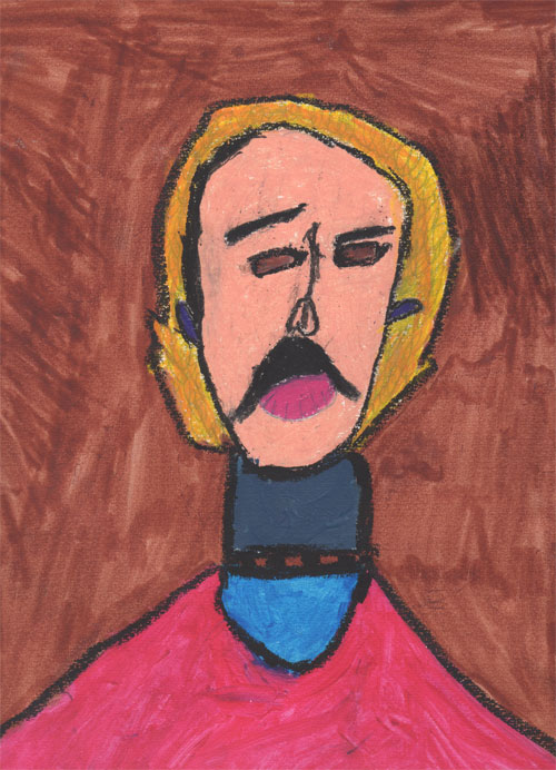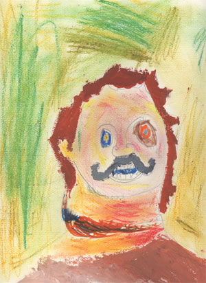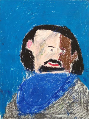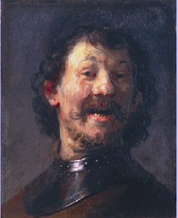 A leur entrée en classe, les élèves découvrent dans la pénombre une oeuvre projetée au tableau. Ils découvrent qu'il s'agit d'un portrait qui sortant un peu de l'ombre, les regarde. Ce visage leur semble cependant ancien, les couleurs font penser à une autre époque. Ce moment d'échange partagé par l'ensemble des élèves permet de DIRE ce qui leur plait, ce qu'ils n'aiment pas ...chez cet homme qui rit de Rembrandt.