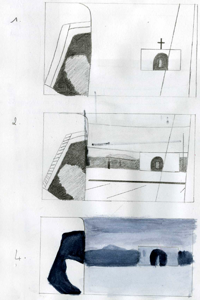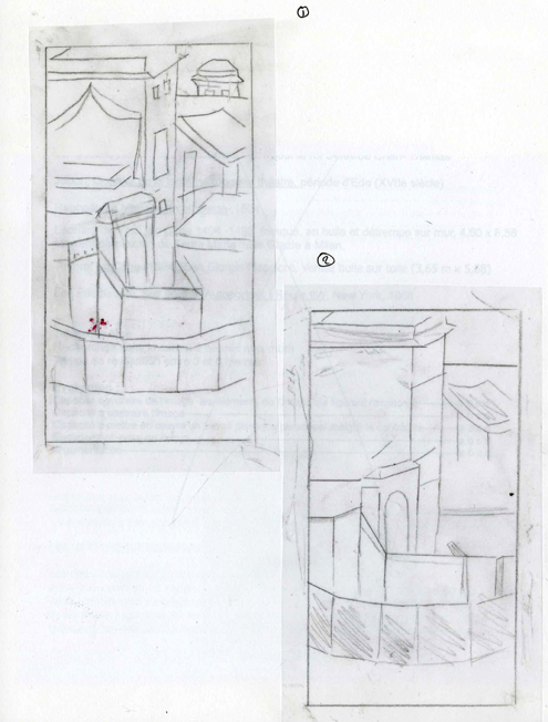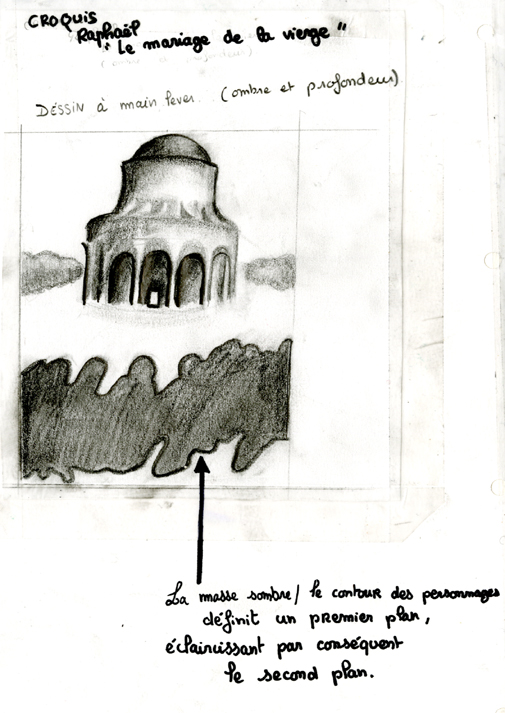 Après la distribution de la fiche de travail ci-dessous et le choix des documents iconiques, il est apparu que personne ne pouvait faire l'économie de schémas,de croquis analytiques pour trouver ce "presque rien" indicateur d'espace...ce travail s'est trouvé être beaucoup plus développé que ce qui était prévu initialement.