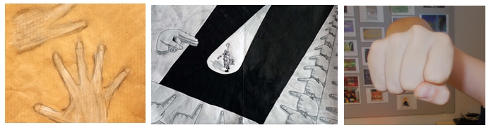 Louise Bourgeois, The welcoming hands, 1996 | Liu Bolin, Iron first, 2014 | Nicolas de Largillière, Etude de mains, 1815 |