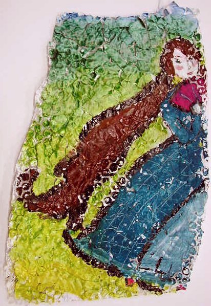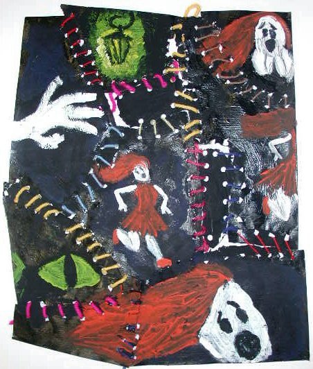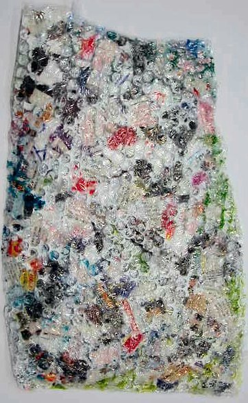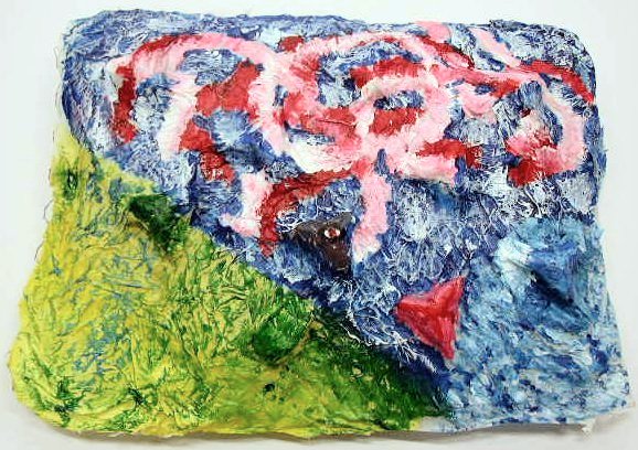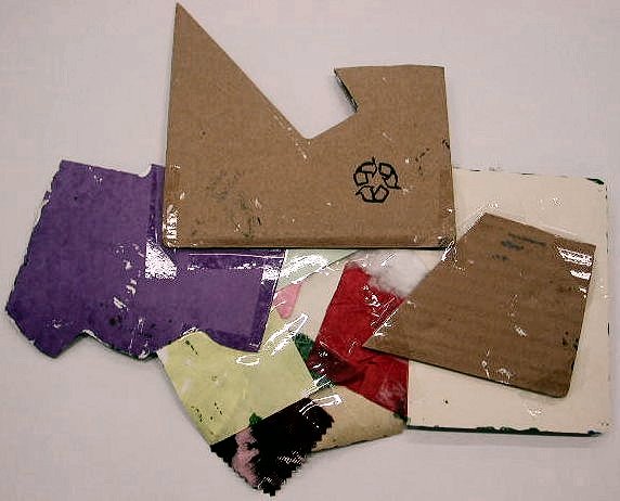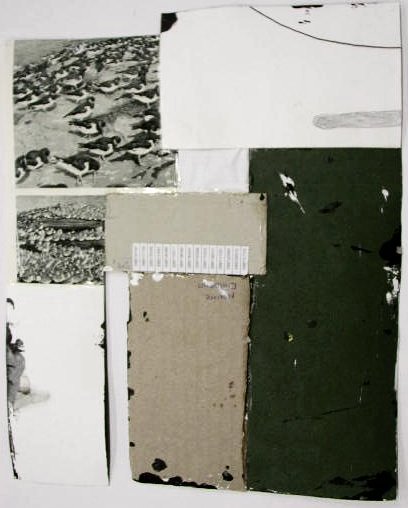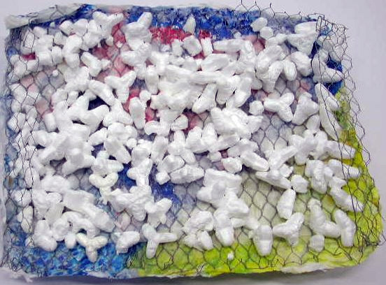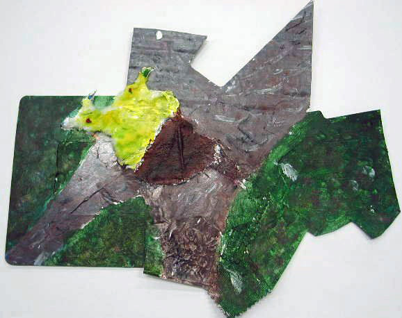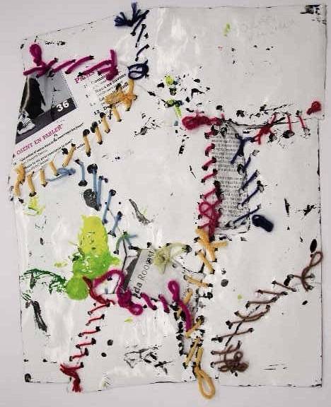 1) des fragments variés sont recueillis et assemblés (superposition, collage, agraffage, couture, entrelacs, tressage, pliage...) pour créer un support par assemblage.