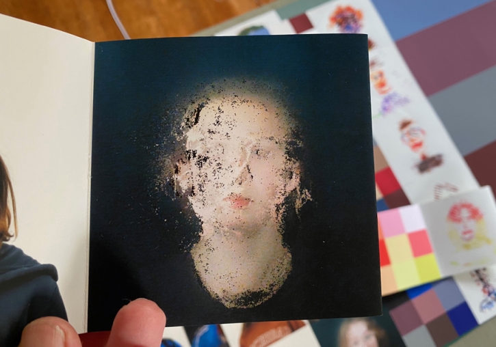 Les élèves ont découvert « Camaïeu » et « Ordinaton », les outils numériques créés par Isabelle Dehay. Ils lui permettent de modifier les images saisies par la webcam de son ordinateur pour les pixeliser en fonction du programme qu’elle a élaboré et du protocole de déformation qu’elle s’est imposée.