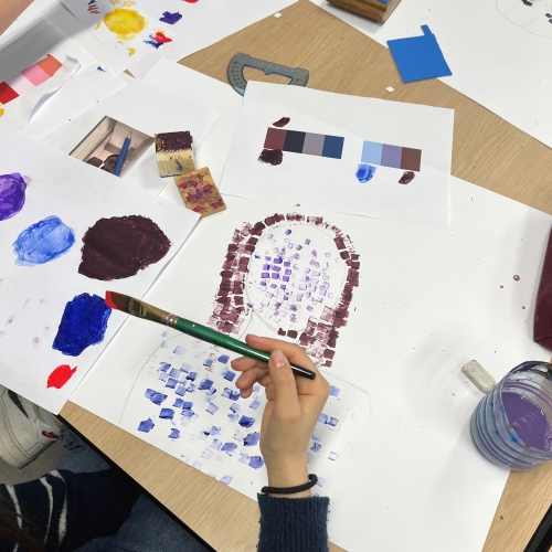 Lors d'un troisième temps de rencontre, les élèves et Isabelle Dehay ont réalisé des médiations pour présenter l’exposition de l'artiste dans la galerie de l’établissement.