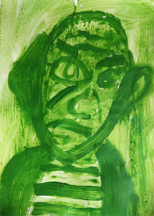 « Sur le travail de Joanna on reconnaît bien les outils qu'elle a utilisé, la grosse brosse pour le front et le couteau pour le visage. »