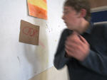 Ils devaient réaliser un travail photographique en se mettant en scène dans un cadre trouvé dans la classe. Ils disposaient pour cela de 30 minutes de réalisation, par groupe de deux, et ne devaient pas enregistrer plus de deux photos par groupe.