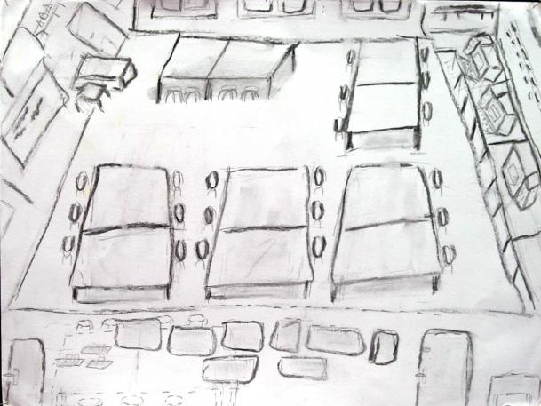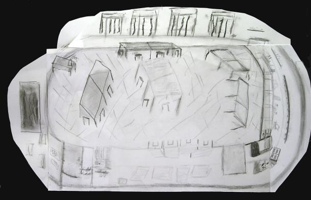 Certains élèves optèrent pour des changements de place constants, commençant leur dessin d'un point de vue, le continuant de l'autre.