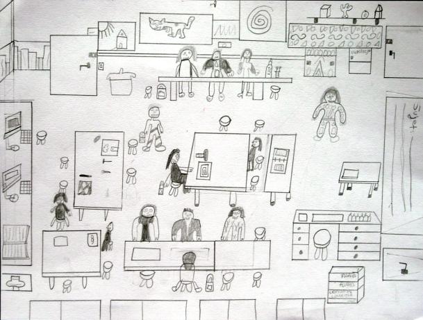 Quelques élèves, plus habiles, proposaient un dessin satisfaisant pour l'œil (au dire des élèves) mais ne répondaient pas à la demande , ce qui n'échappa pas à tous ceux qui disaient avoir "galèré" pour faire ce qu'on leur demandait. On pu cependant repérer que de nombreuses réponses étaient possibles et que la perception de l'espace classe était envisageable sans qu'il y ait forcément "ressemblance".