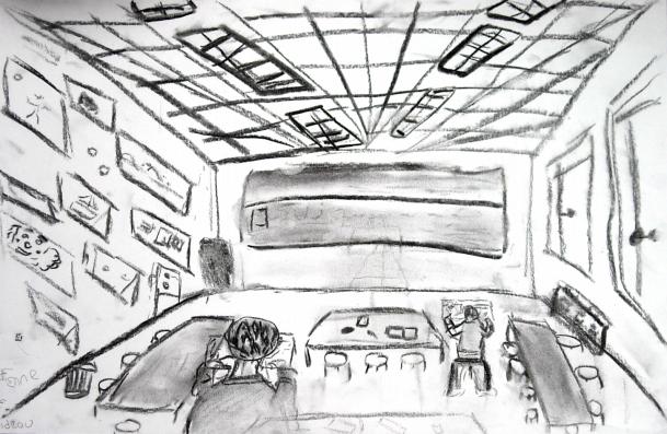 Les contraintes matérielles ont pour objectif de ne pas les laisser devant l'embarras du choix : crayons, stylos et fusains, seront l'occasion de dessiner. Le fusain facilitera la possibilité d'envisager l'utilisation des ombres ou de créer des nuances.