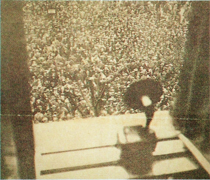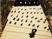 Je distribue une photocopie noir et blanc de la photographie du Vossiche Zeitung (elle-même en noir et blanc). Après une petite discussion concernant la date de la photographie, son origine, son aspect énigmatique (on ne reconnaît pas bien ce qui est représenté, les élèves ne savent pas ce qu'est le gramophone du premier plan), je leur demande de "reproduire l'image à leur façon".