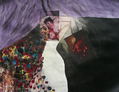 « Afin de pouvoir créer une fusion possible entre ces trois détails radicalement différents, j'ai tenté de me réapproprier les techniques et la facture des différents artistes et en donnant une unité à l'hétérogénéité par l'intermédiaire d'une bulle symbolisant le rêve du modèle féminin endormi (en écho à l'œuvre de Gilles Barbier, L'ivrogne). » Olivier