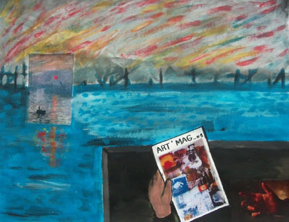 « Pour relier les trois fragments, j'ai recréé une image figurative « racontant une histoire ». Les trois fragments sont donc reliés par le sens de l'image et par les techniques picturales (notamment Monet) ». Noémie