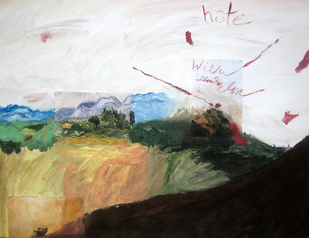 « Il faut réunir de façon homogène une image et de la peinture de façon qu'il n'y ait pas de différence flagrante entre les deux supports. Les deux supports doivent se confondre, ne faire plus qu'un. Il fallait également réunir trois fragments d'image sur le même format et donc créer des liens entre les images pour éviter des ruptures : à nouveau donner une homogénéité dans l'esquisse. » Ophélie