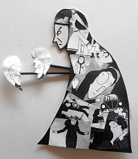 "Si le héros sort de sa vignette ..."A partir de la planche de photogrammes extraits du film, proposez un travail plastique où le héros s'échappe et sort de son cadre habituel, de sa vignette. |