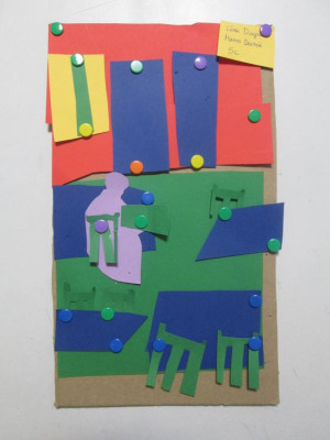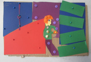 Les réalisations mettent en exergue la couleur, la forme et l’organisation de l’image. Ce travail de papier découpé permet de faire connaissance avec un vocabulaire propre à la peinture et lié à la notion de reproduction.