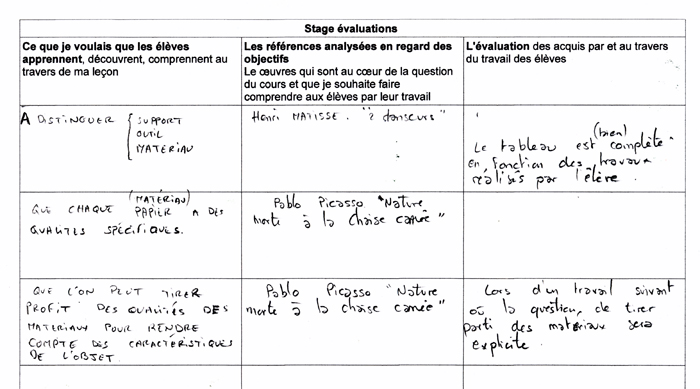 compétences disciplinaires - exploiter les qualités fonctionnelles et expressives des outils, des matériaux et des supports variés - expérimenter, tâtonner, utiliser le hasard et choisir - reconnaître; distinguer et nommer différentes formes de productions plastiques