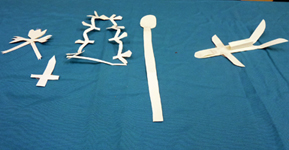 Surface plane, relief, volume, sculpture, bidimensionnalité/tridimensionnalité, (statue); opérations plastiques : découper, plier, déchirer, emboîter, enrouler, tisser, coller, percer