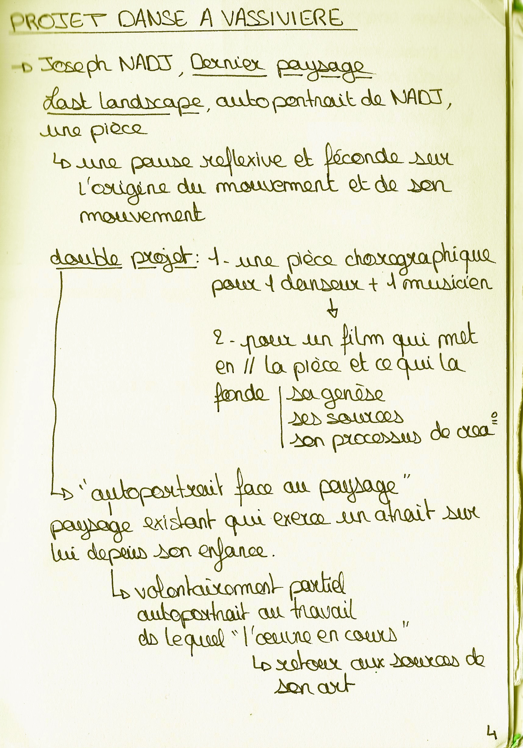 Dans Le Dernier Paysage, NADJ met en parallèle Last Landscape et ce qui fonde cette pièce : sa genèse, ses sources, son processus de création. C'est aussi un « autoportrait au paysage » mais volontairement partiel, qui présente « l'oeuvre en cours ».