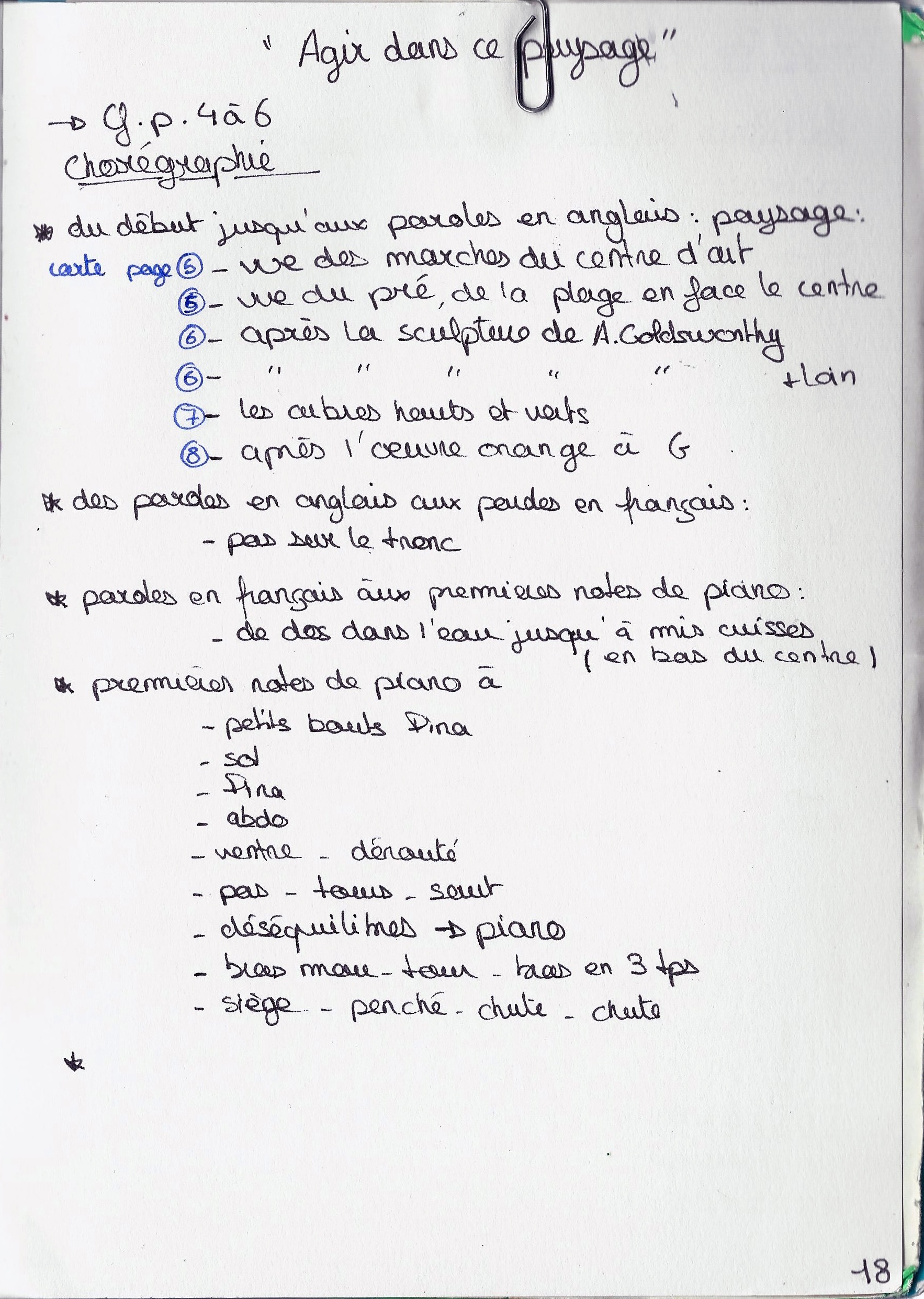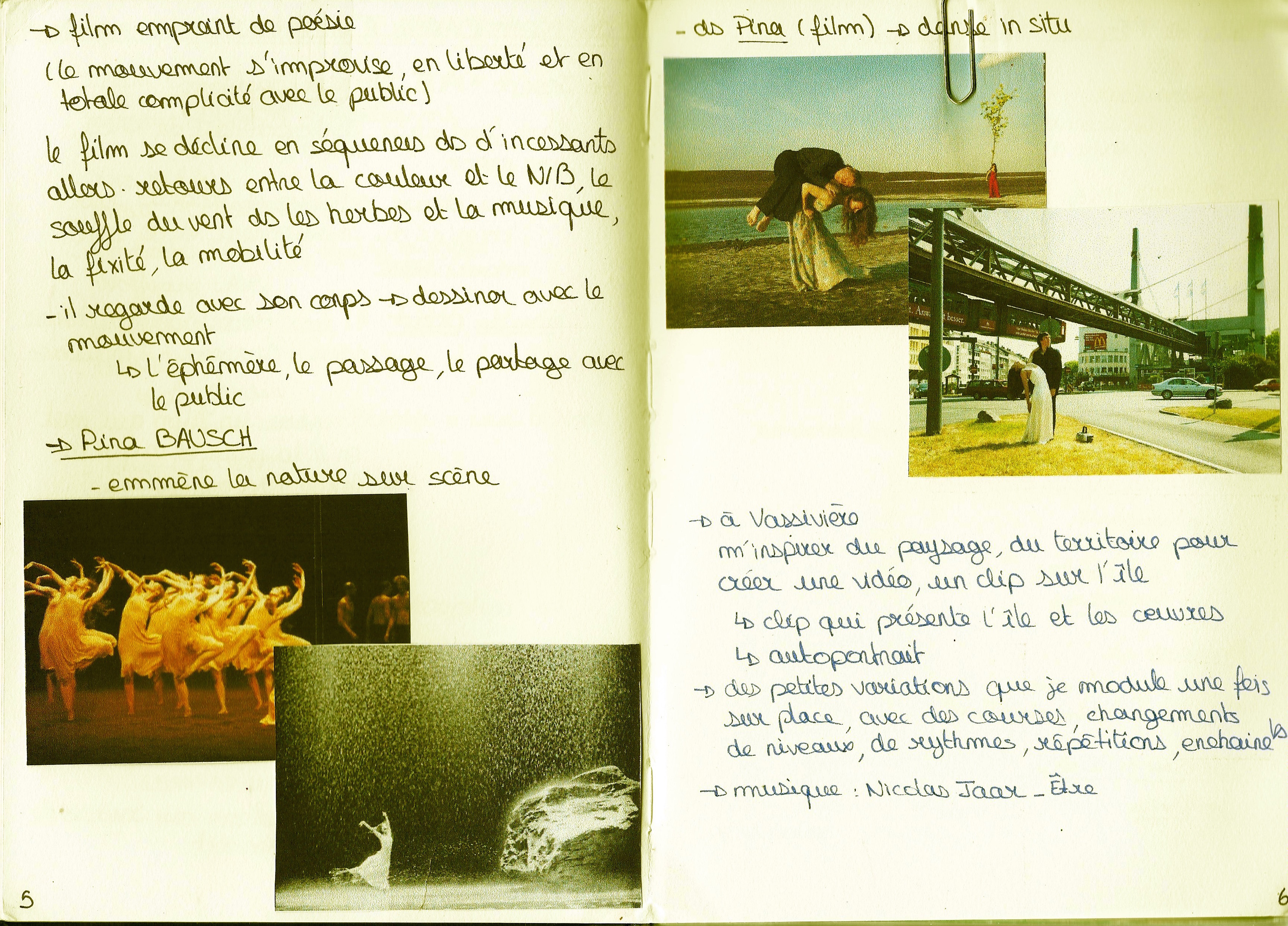 Il s'agit d'un projet personnel élaboré en fin d'année de première en prévision d'un voyage d'étude au CIAP (Centre International d'Art et du Paysage) de Vassivière, prévu dès septembre de l'année de terminale. L'élève est arrivée sur le site avec une idée et a pu inscrire son projet en écho à l'exposition en place et à la demande des médiateurs "Agir sur ce paysage". Après avoir abordé la question de la représentation du paysage, il est question d'en investir les données physiques. Dans son carnet de travail, Meg fait apparaître à plusieurs reprises ce projet. On y voit les questionnemnts et le processus d'élaboration.