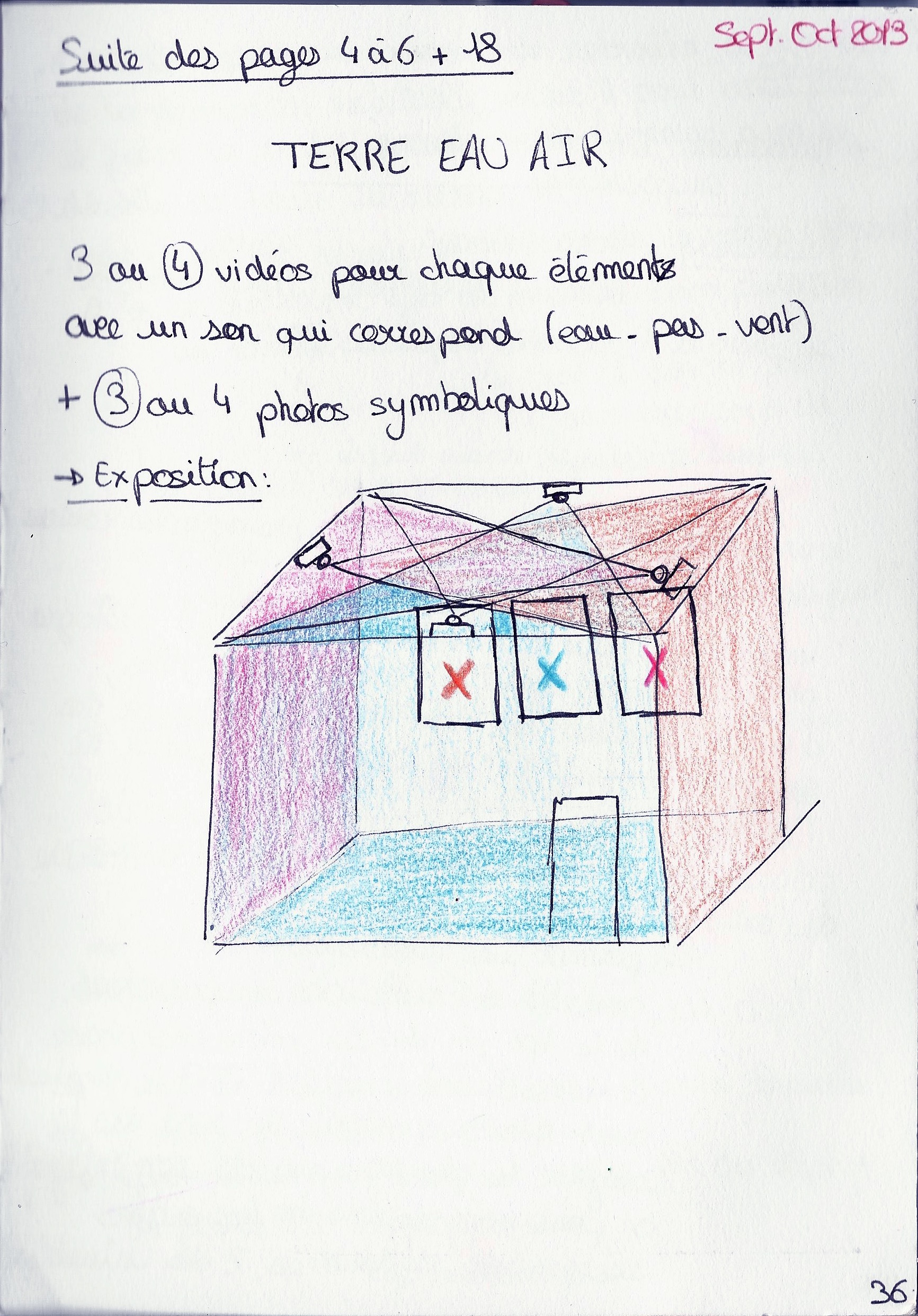 J'imagine une exposition à l'intérieur d'une pièce avec sur chaque mur la projection d'une vidéo en boucle, et sur le dernier mur 3 images, symboles de chaque vidéo.
