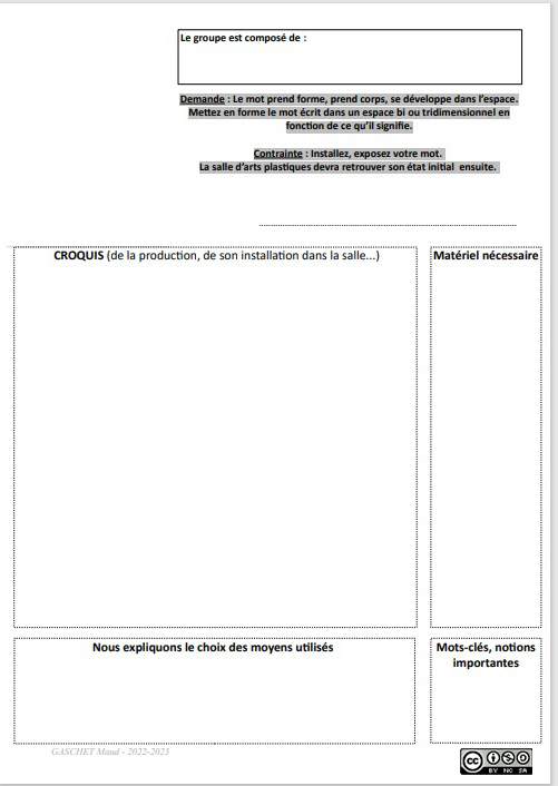 Durant 15 minutes, tous sont invités à réfléchir graphiquement, sur le cahier, et de façon individuelle à la manière dont le mot pourrait prendre forme.