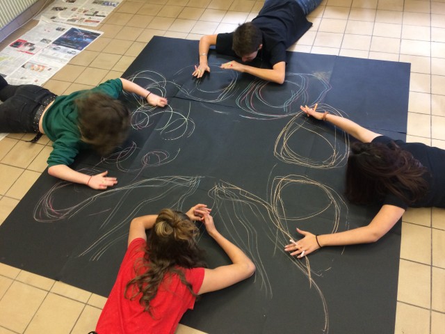 - Travailler seul ou à plusieurs (question de collaboration ou de co-création), ce qui pouvait permettret à des élèves plus réservés de s'engager dans un travail où le corps et l'espace sont en jeu.