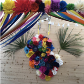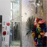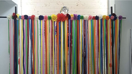 Notre projet est une installation adaptée à un lieu que nous avions choisi auparavant. Ce travail est constitué de plusieurs éléments composant un univers mexicain pour commémorer l’artiste Frida Kahlo. La structure imaginée a pour but de susciter une certaine intimité grâce à cette porte rideau et ses nombreuses bandes de papier crépon colorées. Le côté coloré et fleuri de cette porte situe l’atmosphère que nous souhaitions avoir ainsi qu’un aspect décoratif et agréable à regarder.Enregistrer