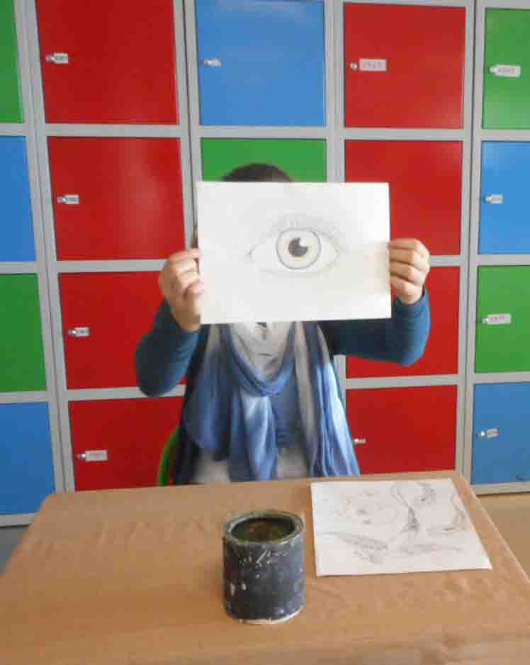 | Support : papier à grain blanc Format : un demi raisin Outil : mine de plomb obligatoire dans la phase première, ensuite les élèves pouvaient choisir ce qui leur convenait. Il était possible de reprendre les dessins réalisés dans le hall lors du travail précédent.