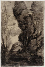 Jean-Baptiste Corot, Un vallon boisé, fusain sur papier, 44x27 cm, vers 1850, Palais des Beaux-Arts, Lille