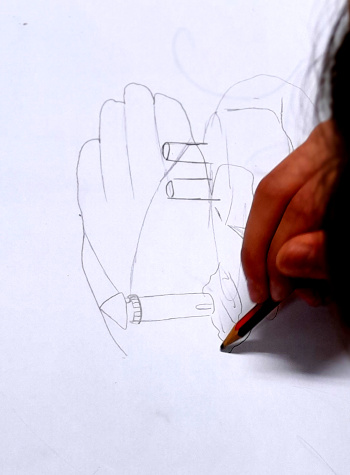 Comment garder trace de cette réalisation ? Que peut bien signifier et symboliser le fait de porter un dessin dans ou sur ses mains, un dessin qui sera éphémère et mouvant ?