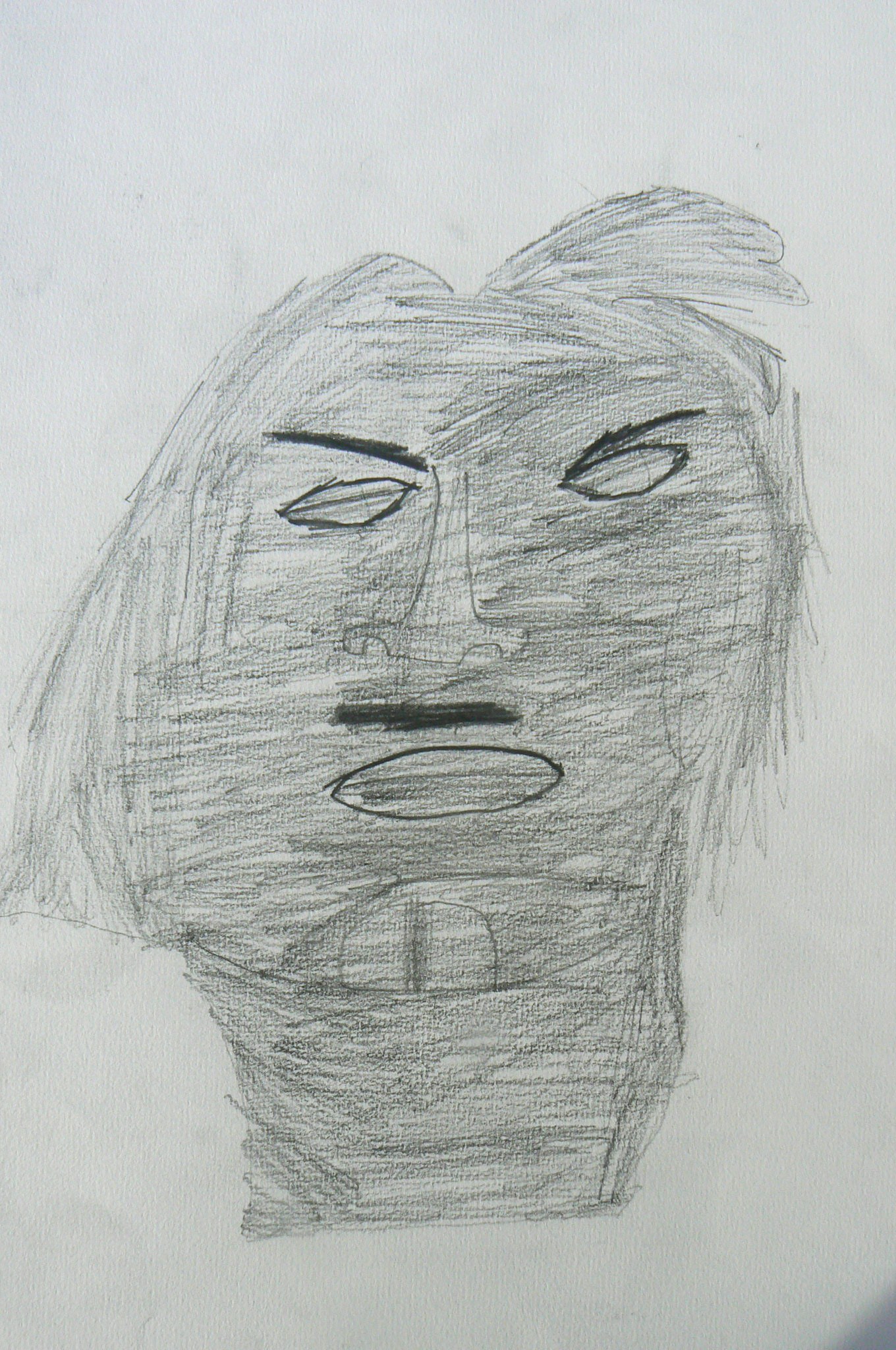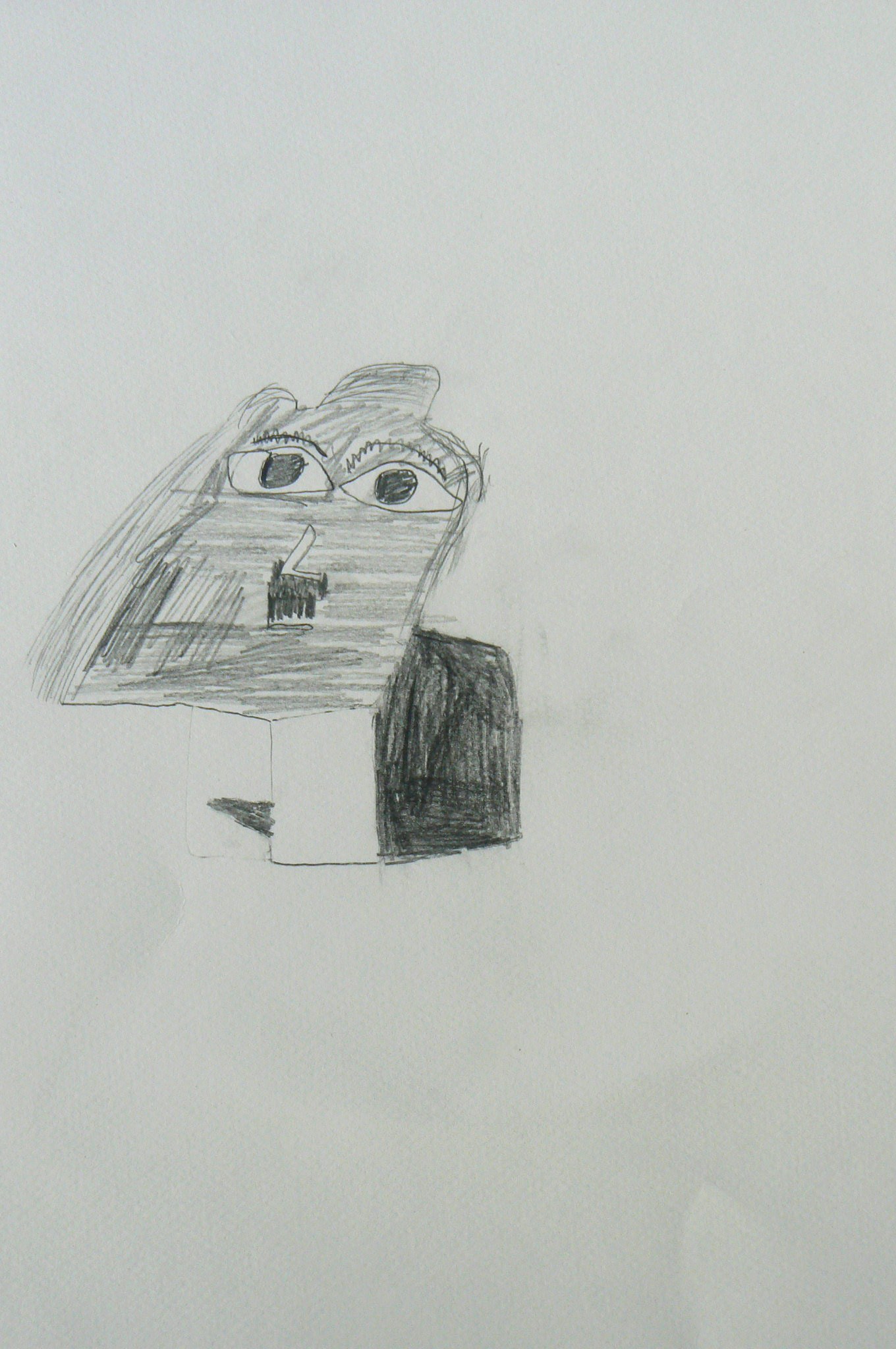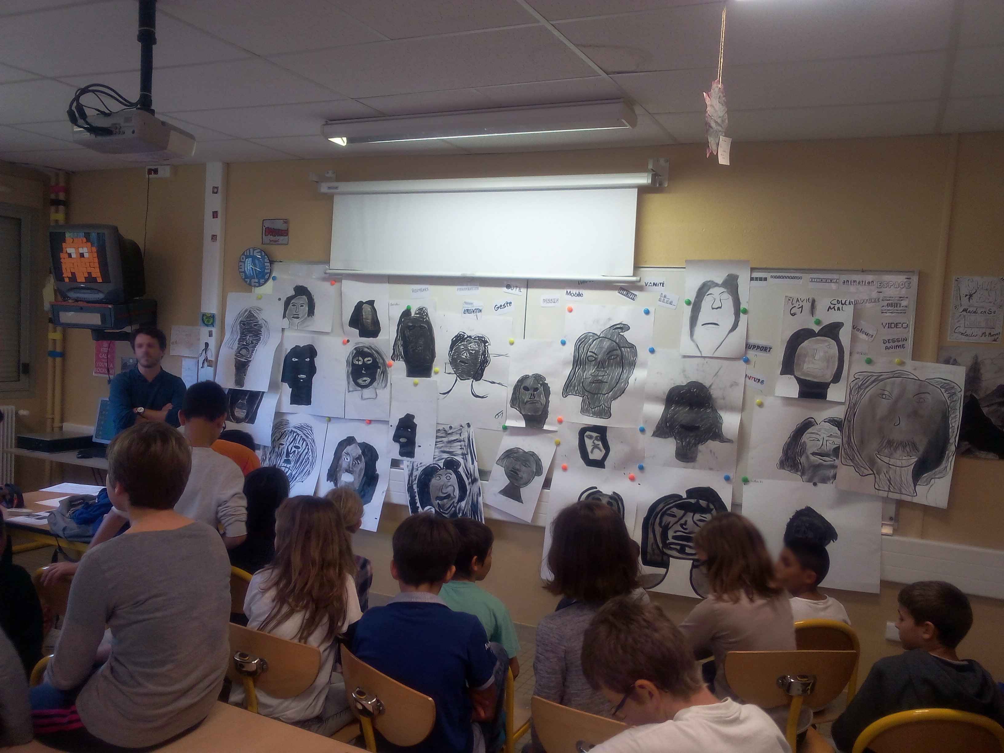 Les élèves ont le choix des outils mais presque tout le monde utilise des crayons à papier. La difficulté de représenter un portrait est tout de suite remarquée et les élèves dessinent exclusivement en traits et contours. Lors de la verbalisation, les différentes façons de dessiner, les différents gestes sont repérés. Les dessins des élèves qui "savent dessiner" sont préférés à d'autres.