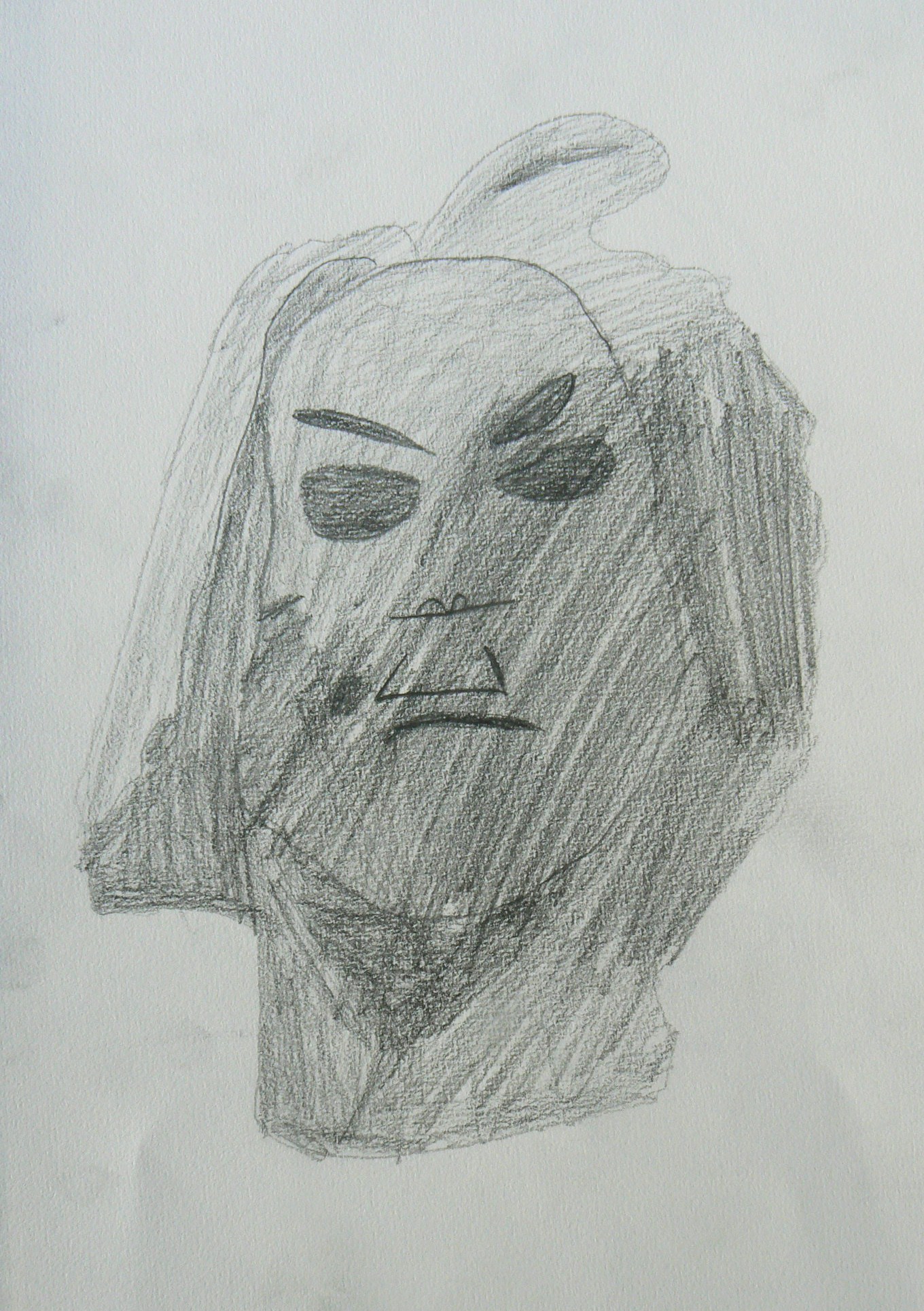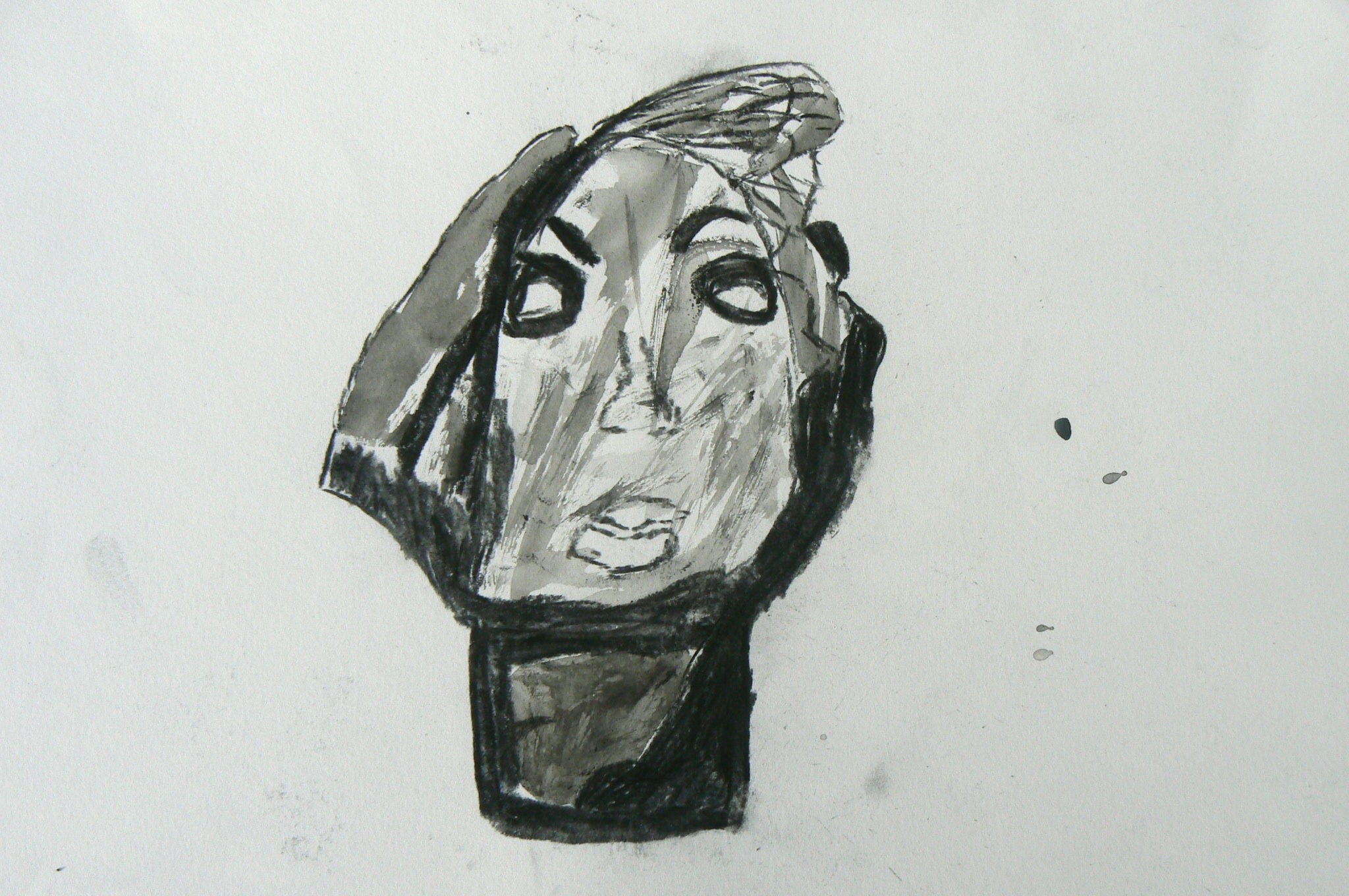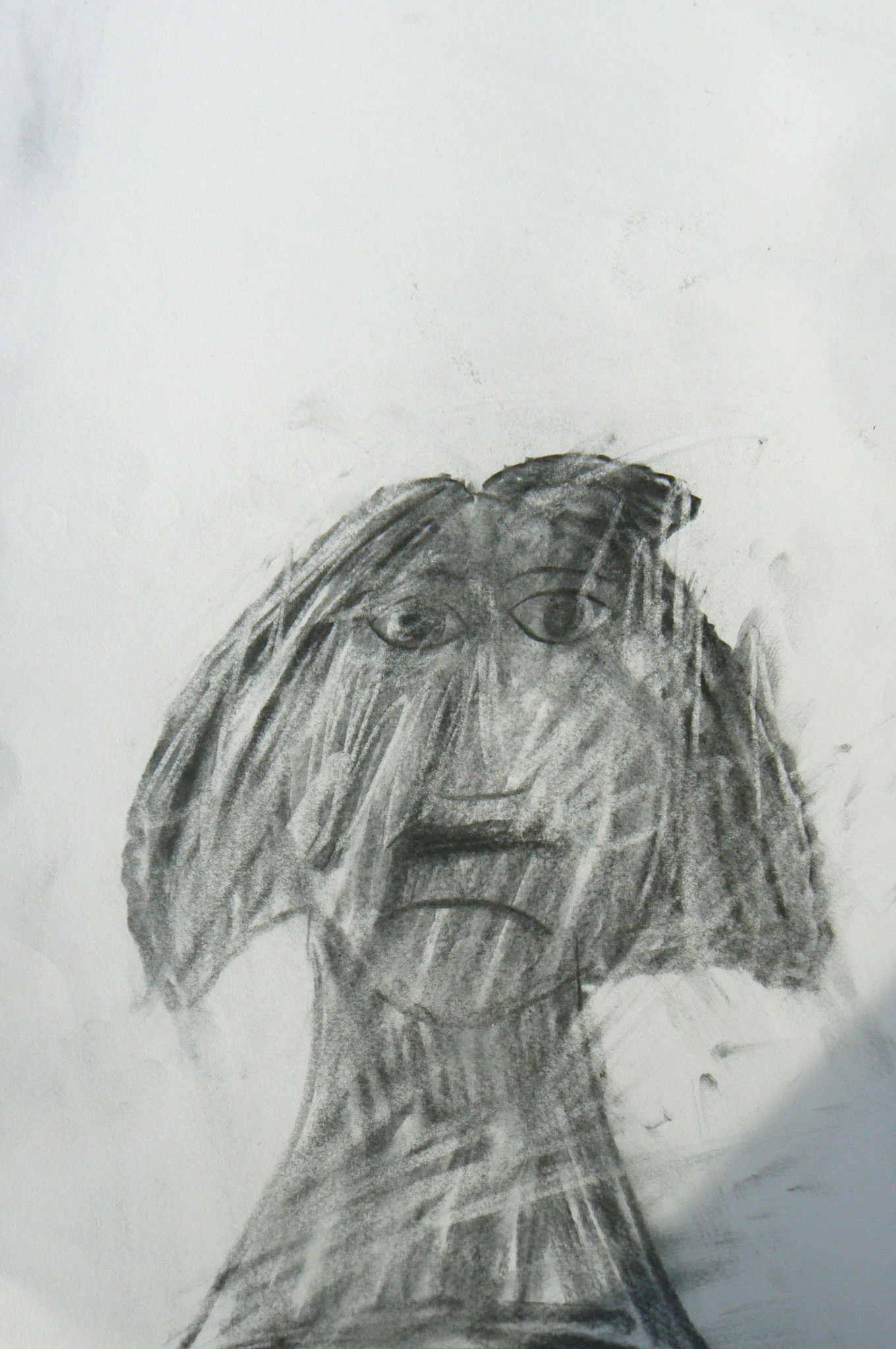 On s'écarte tout de suite de la ressemblance : les sourcils de Balzac sont froncés, les bouches tordues, les cheveux en bataille, etc. Le professeur incite à libérer le geste : "essaie d'être plus énervé", "adoucis tes traits...".