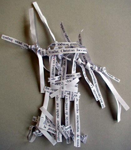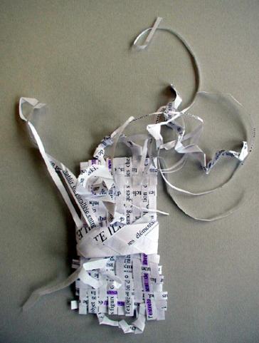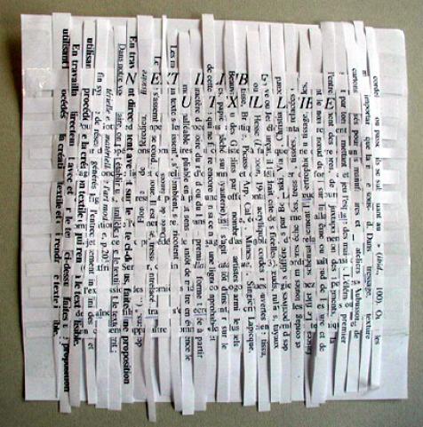 en travaillant directement avec et sur le texte de la photocopie, faites une proposition utilisant des procédés de la création textile qui rendront le texte illisible