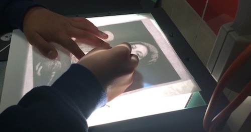 Lors des verbalisation les notions de point de vue, de cadrage, de lumière ont été abordées ainsi que la mise en abîme. Les élèves remarquent que la photographie a été utilisée comme technique de production d'images mais également pour garder une trace de leurs expérimentations.