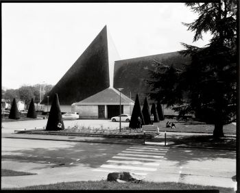 Photographie à la chambre, vue d'un ensemble d'habitations