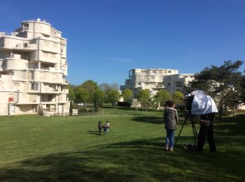 Les enjeux pédagogiques de la séquence sont définis en amont, l'objectif est de proposer un travail collaboratif aux élèves. La classe est décomposée en petits groupes de 5 élèves qui, le temps d'une matinée, partent dans le quartier accompagnés par le professeur et le photographe. En amont, les lieux ont été repérés par les élèves qui les ont déjà photographiés à l'aide de leurs téléphones ou des appareils de la classe. Très vite les échanges se mettent en place sur le point de vue approprié en fonction du sujet choisi, à partir de photocopies de photographies de s élèves. Pendant que le photographe installe le matériel, le professeur échange avec les élèves sur le cadrage, la lumière, la profondeur. Ils sont ensuite invités à regarder à travers le dépoli pour valider la prise de vue. Il leur est demandé de se placer dans l'image. Le temps de pause varie selon les lieux choisis.