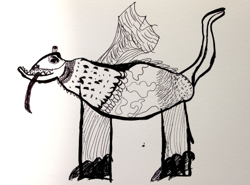 Au départ on ne voyait rien d'autre que du noir sur une feuille et en regardant bien on a trouvé des monstres ou des bonhommes. Si on avait pas fait les traits, peut-être que les autres ne verrait pas les mêmes choses que nous. | |
