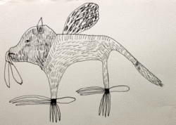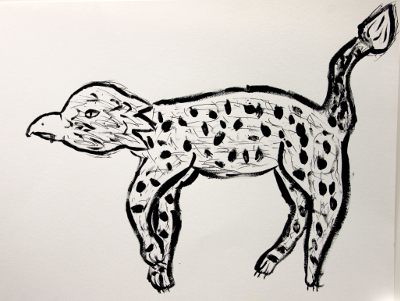 Moi j'ai fait une tache avec ma plume, mais j'ai pris le pinceau et du coup j'ai fait des taches sur mon éléphant avec.