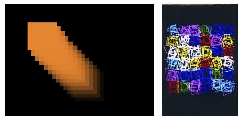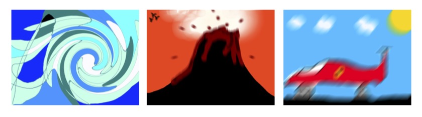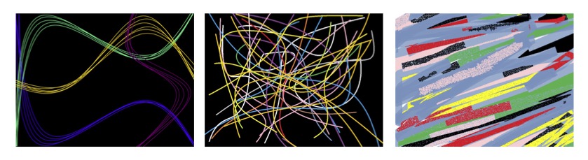 Une verbalisation intermédiaire à partir de la projection au tableau de deux ou trois productions d’élèves différentes en cours de réalisation permet aux élèves se saisir des types de représentations et de se rendre compte de quelques potentialités offertes par le logiciel. Cette étape peut permettre d’accompagner certains collégiens dans leur démarche, de mobiliser ou remobiliser du vocabulaire et d’ouvrir leurs questionnements. Les élèves dégagent de cet échange des pistes de réponses plastiques comme l’occupation de l’espace, la qualité des formes, leurs superpositions, les répétitions, les couleurs, les contrastes, les gestes, le mouvement, les outils … Les élèves finissent leurs productions et l’enregistrent en trouvant un titre.