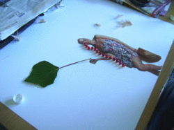 La plupart des élèves vont certainement tenter de représenter une nature morte ou de reproduire le tableau qu'ils viennent de voir. Il se peut tout de même que certaines réponses ne soient pas la représentation d'une nature morte, que les élèves procèdent de manière à mettre en évidence l'élément concret (la feuille) ou qu'ils cherchent à faire émerger le réel à partir de fragments de la réalité.