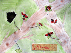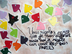 Sur chacun des grands formats proposés est fixée une feuille d'arbre, en haut à gauche. Les élèves découvrent ce dispositif sur leur table, à leur arrivée en classe.
