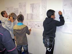 Il s'agit ensuite de compléter le dessin pour que l'on comprenne l'histoire qu'ils se sont racontée, pour cela d'autres dessins de la manga d'Hokusai sont à leur disposition sous forme de photocopies.
