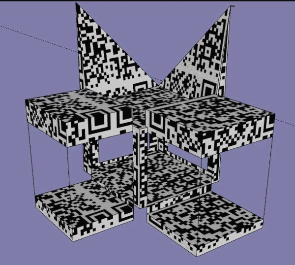 Nous avons pu définir la structure de « la base » du QR code comme une trame qui se retrouvait dans beaucoup de leurs réalisation et dans quelques œuvres projetées ensuite. Ils ont très bien opposé l'aspect géométrique de la trame du code aux formes organiques (« pas régulières, aléatoires ») qu'ils ont produites parfois.